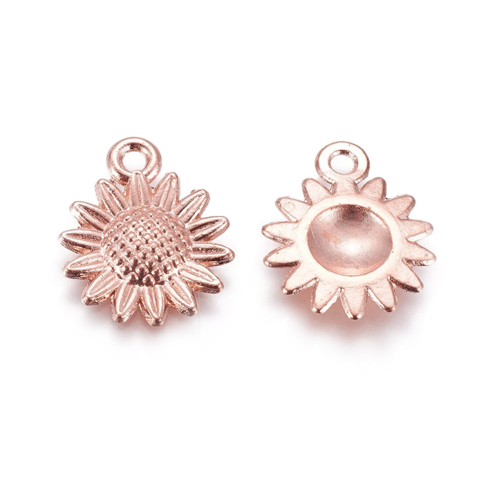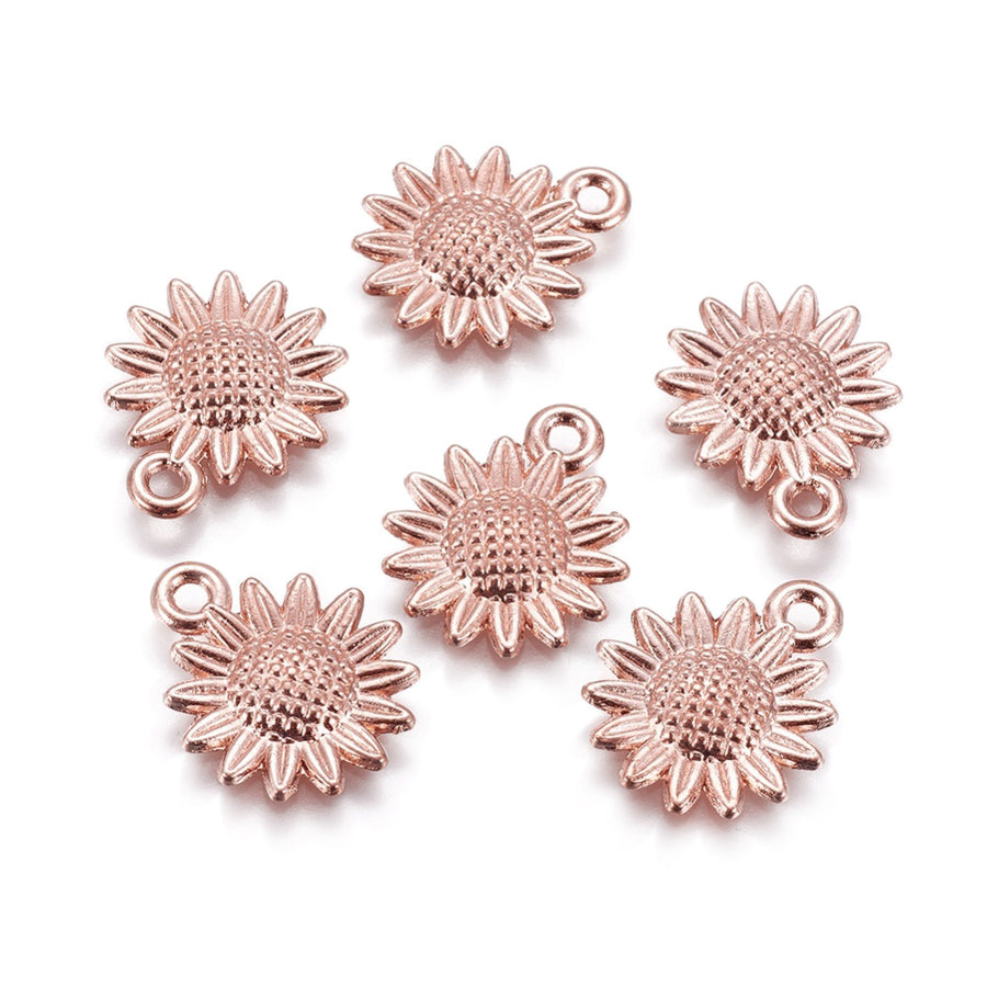 Popular Tibetan Rose Gold Sunflower Charm Beads, Rose Gold Colored Vintage Flower Charms for DIY Jewelry Making.