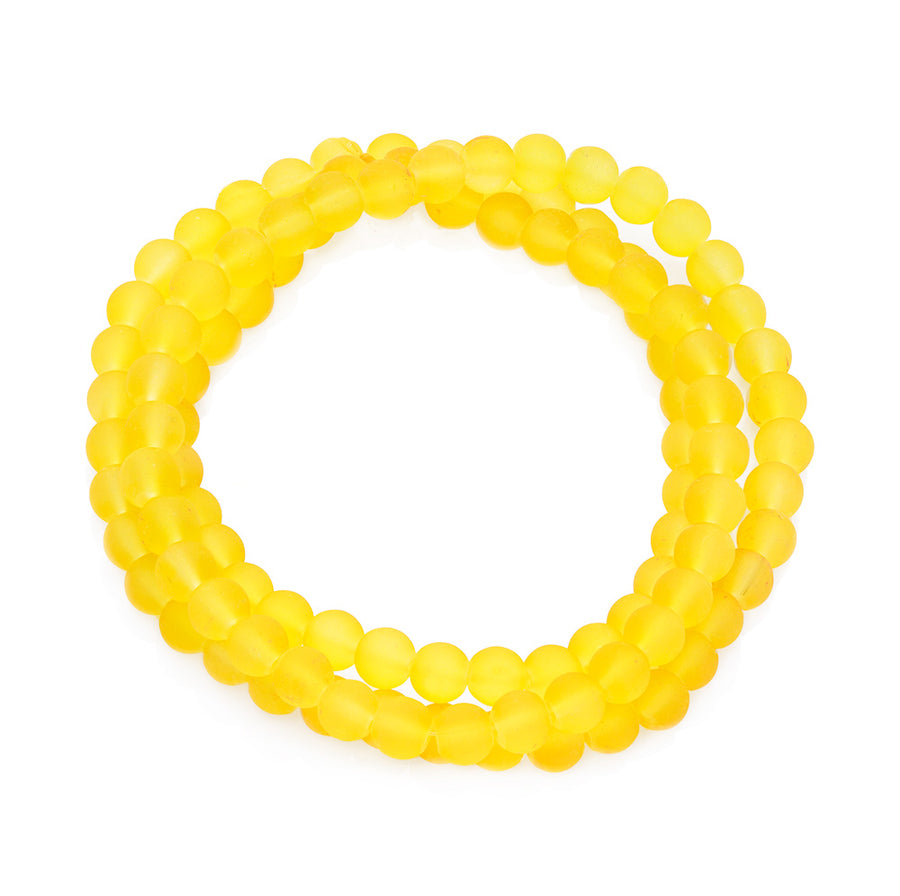 Frosted Glass Beads, Round, Canary Yellow Color. Matte Glass Bead Strands for DIY Jewelry Making.