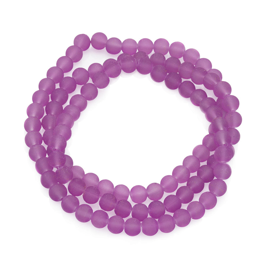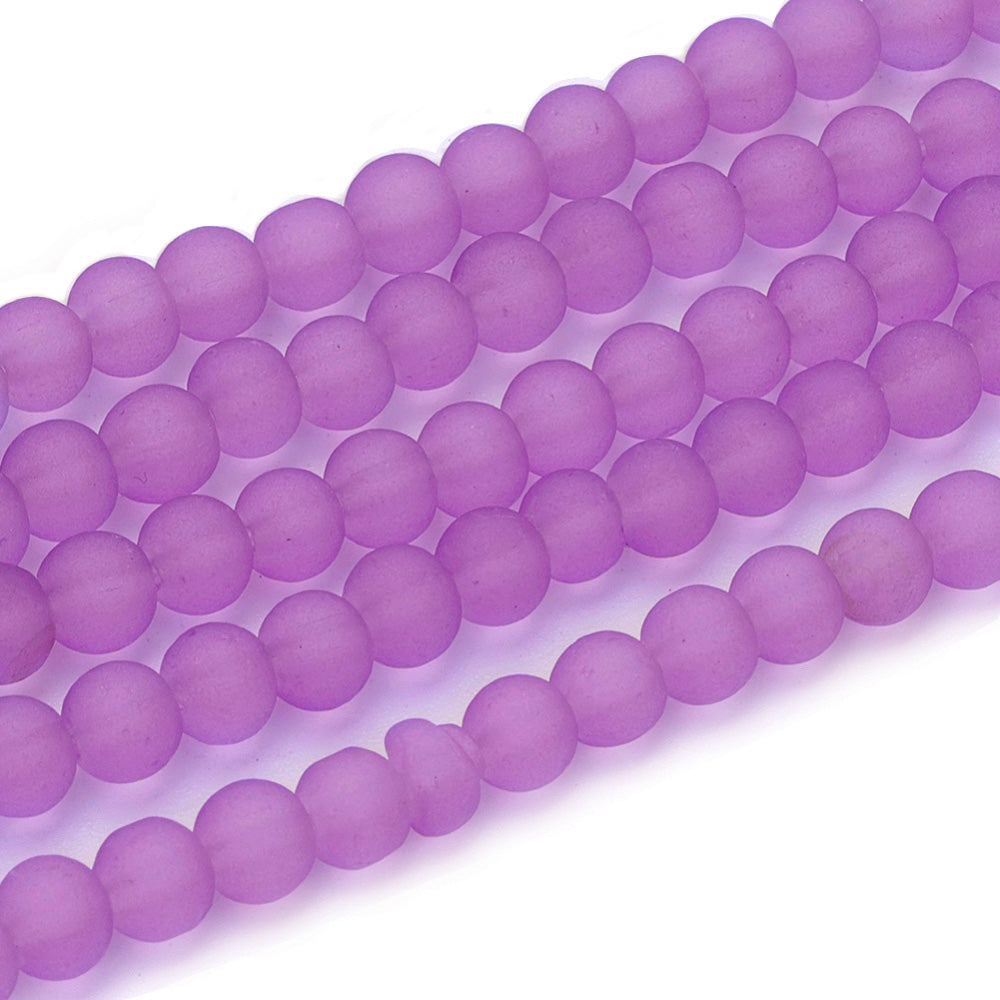 Frosted Glass Beads, Round, Purple Color. Matte Glass Bead Strands for DIY Jewelry Making.