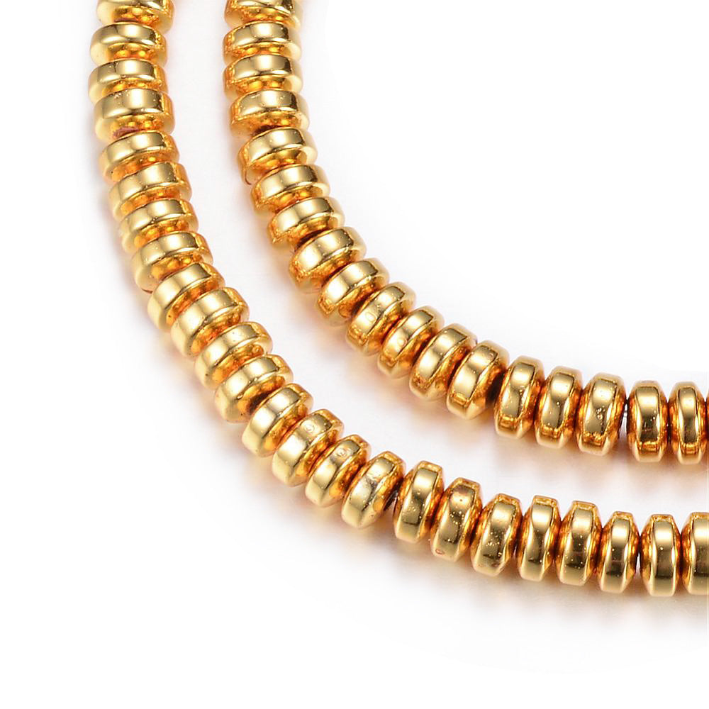 Gold Plated Hematite Spacer Beads, Rondelle, Semi-Precious Stone Beads for Jewelry Making.