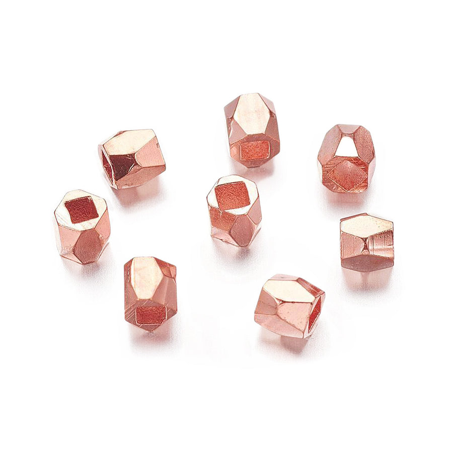 Material:  Rose Gold Plated Metal Alloy Spacer Beads. Column Shaped, Faceted, Shinny Finish.